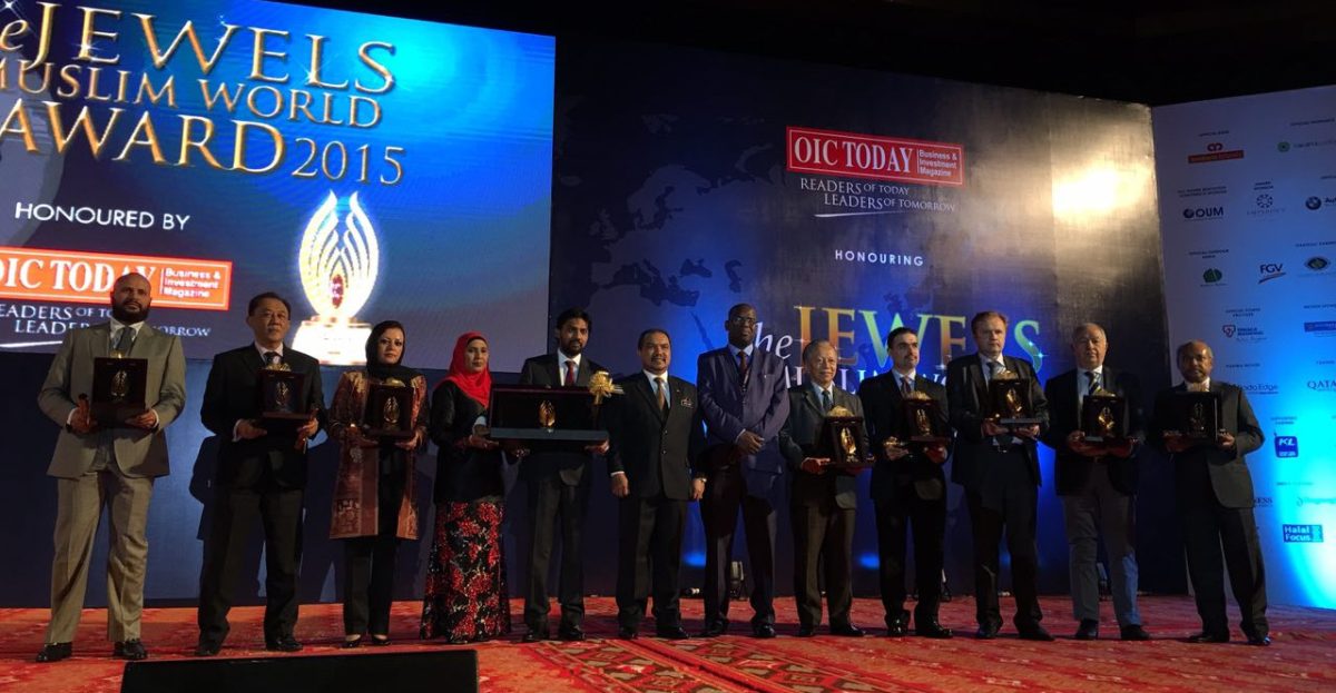 The Award was honoured by OIC Today Magazine as an endeavour to mark excellence, innovation and accomplishments of individuals towards elevating the Global Islamic Economy. The Jewels of Muslim World Award symbolises the recipients as Movers & Shakers of the Islamic Economies that have created wealth and assets through their talents and contribution of their efforts.
